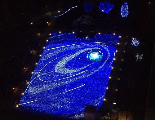 場景三:香港版星光花園在香港有一處和「星光花園」有關的「聖誕燈飾匯演」,號稱可以睥睨東京的燈節本尊,邀請東京曾替「星光花園」設計燈海的燈光設計師,複製迷人的浩瀚燈海,在香港沙田的新城市廣場綻放五光十色的畫面,使用超過十萬顆白、藍色的LED燈,每20分鐘就會有宛如宇宙運行的燈光秀,光影流動出令人驚呼的視覺效果。