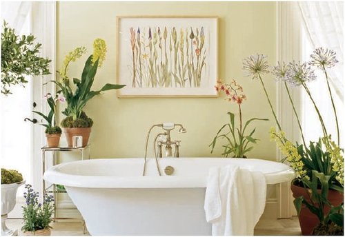 客人專用的浴室,在純白的復古浴缸中和滿室的花花草草相伴。